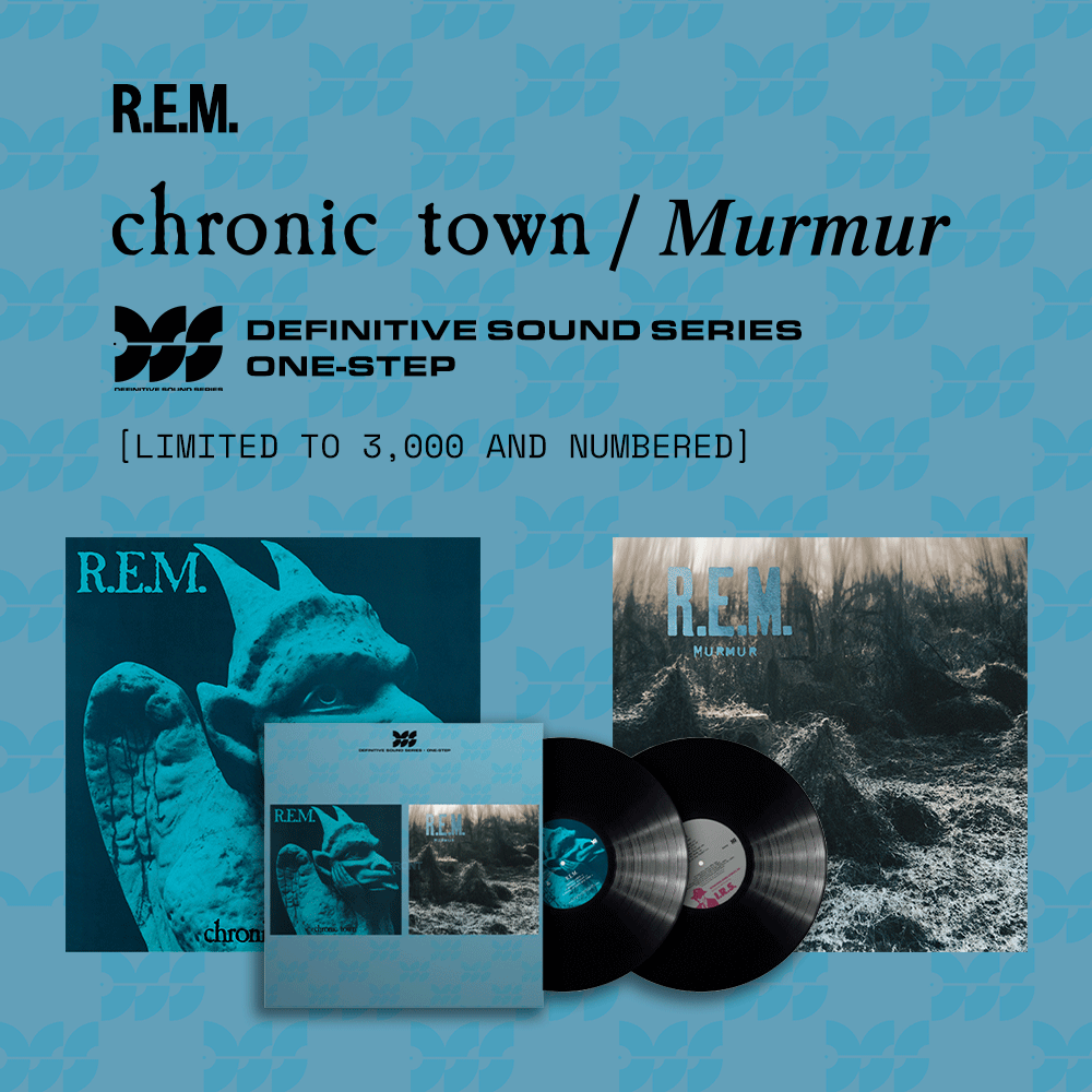 Audiophiles take note! Chronic Town together with Murmur, the band’s earliest IRS releases, are now available via the Definitive Sound Series–a meticulous One-Step vinyl process renowned for its superior sound quality. The DSS version of Chronic Town/Murmur is limited to a one-time pressing of 3,000 numbered copies and includes a top-quality heavyweight tip-on jacket for the first time. Both records are then housed in a uniquely designed slipcase.